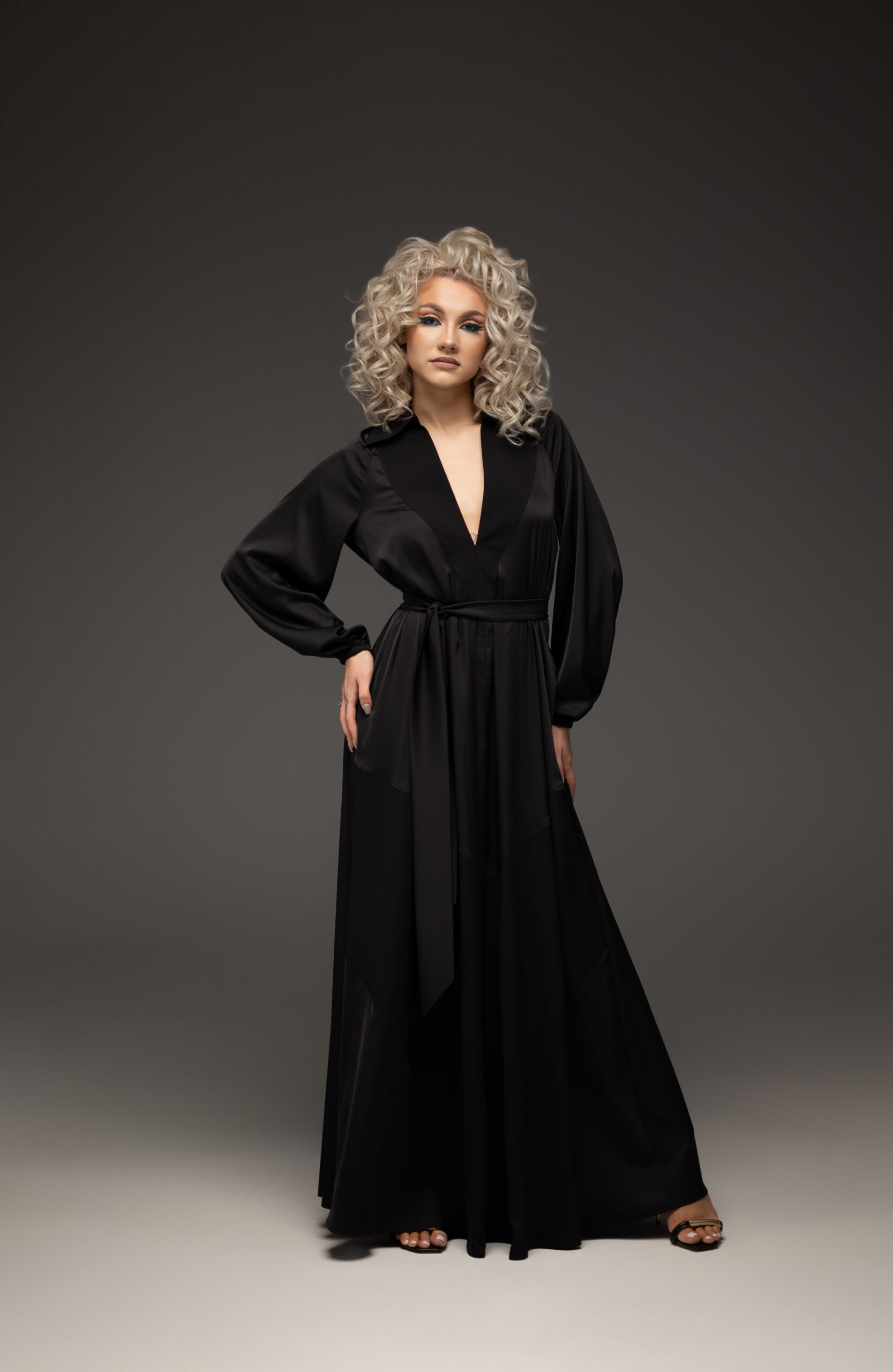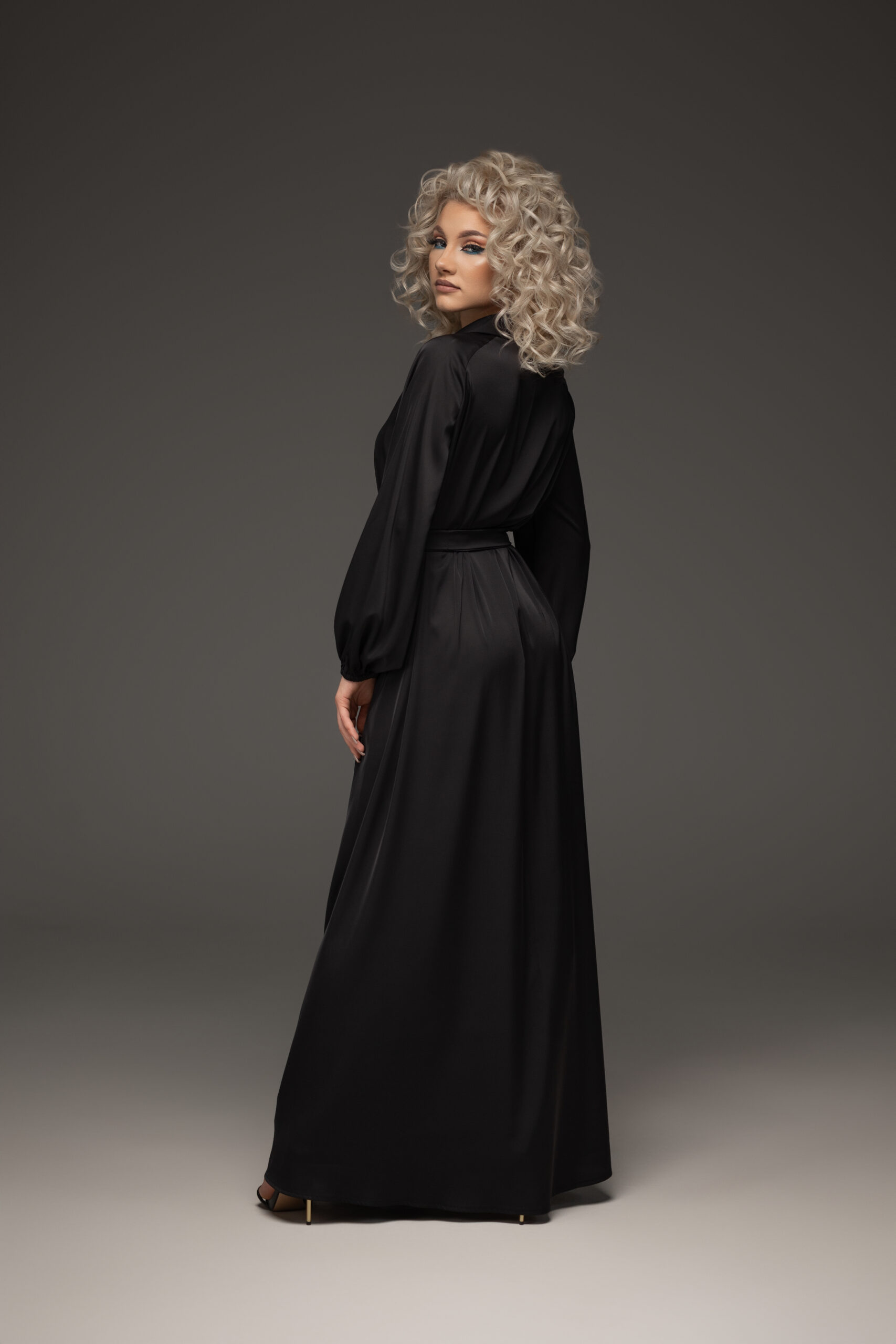 Rochie lungă din satin cu decolteu îmbină luxul materialului cu un design deosebit,textura sa lucioasă și fluidă conferă rochiei un aer rafinat ,iar croiala lungă care se desfășoară pînă la podea accentuează eleganța purtătoarei , creînd o siluetă alungită.
